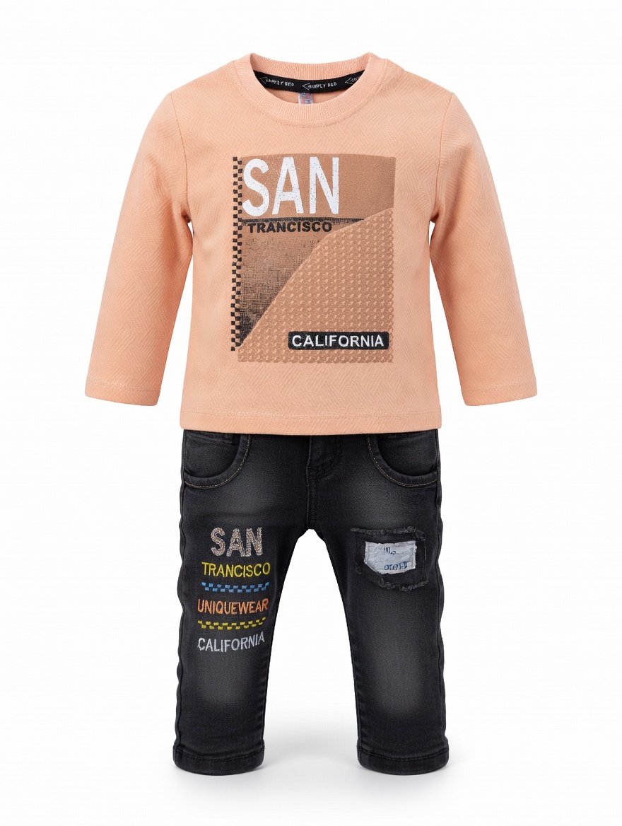 The eye-catching “San Francisco California” sweatshirt adds a cool and confident look, while the matching denim pants complete the outfit with a fashionable touch. Whether your child is attending Eid gatherings, visiting relatives, or taking family photos, this outfit ensures they stand out with effortless style.