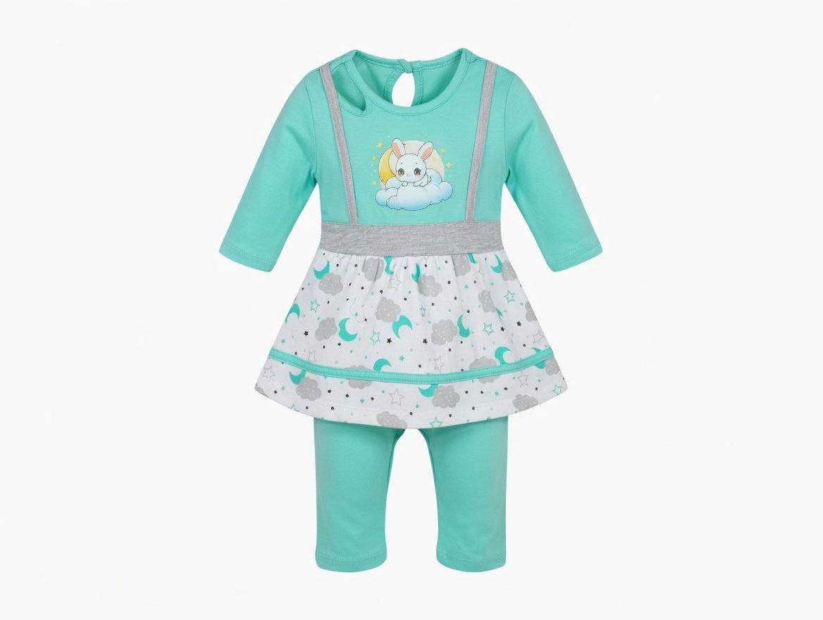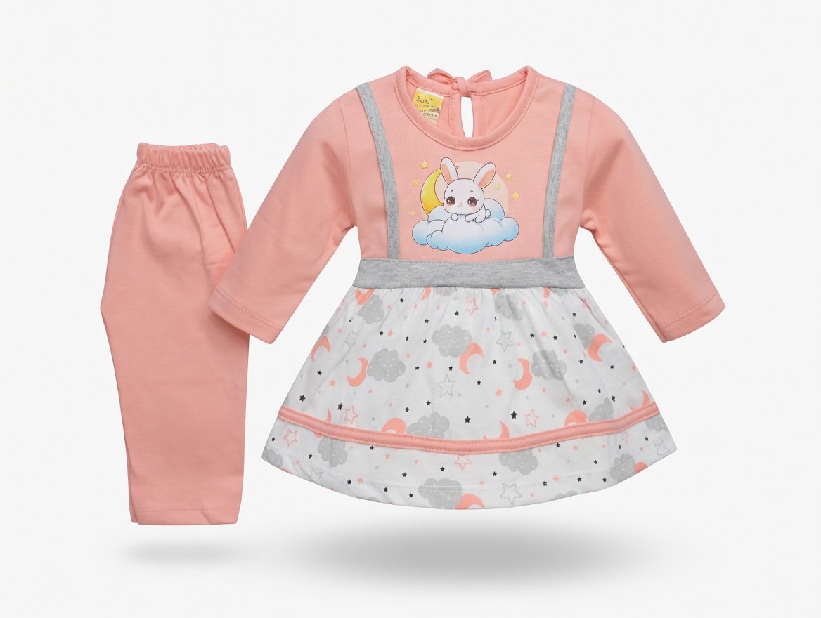Celebrate Eid in style with this adorable kids 2-piece festive outfit, designed for toddlers and young children. Crafted with soft, breathable fabric, this set ensures maximum comfort during long festive days. The outfit features a charming bunny resting on a cloud with crescent moons and stars, making it perfect for Eid prayers, family gatherings, and festive photography. The coordinated top and pants are complemented by a playful skirt-like layer with celestial patterns, adding a touch of elegance and joy to your child’s wardrobe.