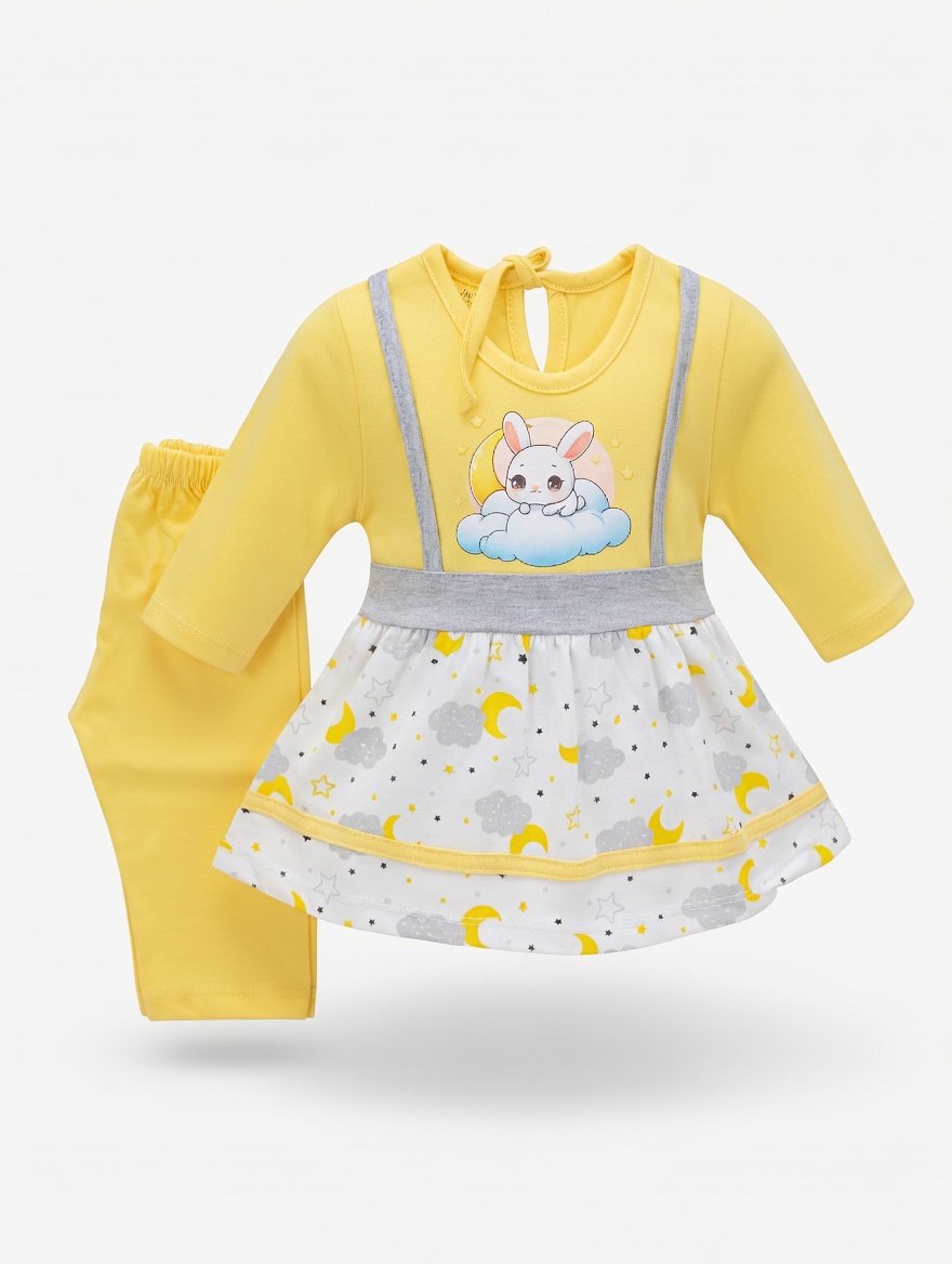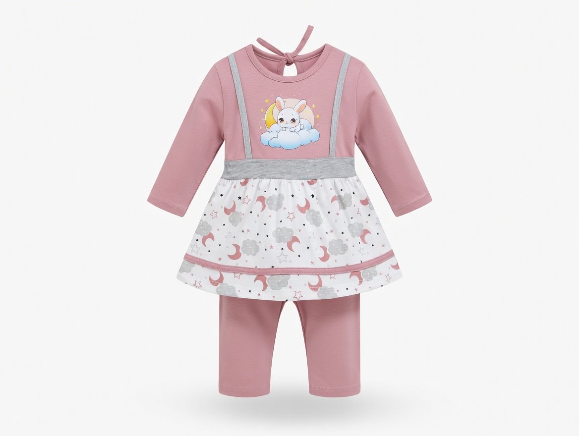 Kids Eid Outfit – Toddler Girls 2 Piece Festive Clothing Set | Bunny Cloud Design